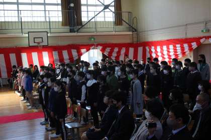 卒業式は、1〜3年生がリモート、4・5年生が体育館での参加となりました。今までお世話になった6年生の立派な姿を、在校生も真剣な眼差しで見つめていました。