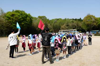 放送を聞いてから、運動場に避難しますが、「おはしも」の約束を守ってとても静かにきちんと並んで避難することができました。