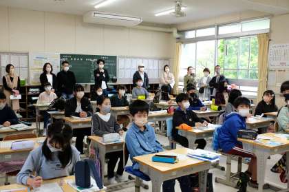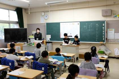 国語の音読発表や算数、社会科など、どの学年も落ち着いた雰囲気の中での参観でした。