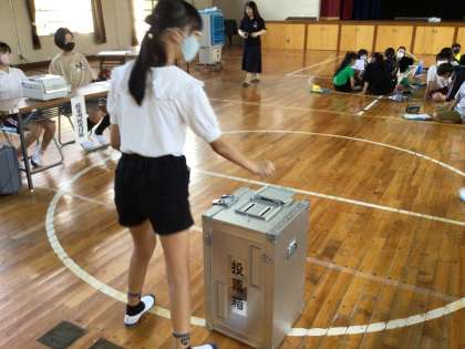 選挙を体験しました 公開日 2023/09/14 更新日 2023/09/14 各学年から 6年生が、選挙出前授業を行いました。 選挙の仕組みについて話を聞いてから、投票をしてみました。 使われた道具は、実際の選挙で使用するものと同じです。 投票用紙を出してもらい、記入をして投票箱に実際に入れました。 投票ができる年齢になった時、今日の体験を思い出して、大切な1票を投じてほしいです。
