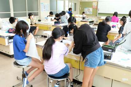 6年生は、家庭科の授業でトートバッグを作っています。