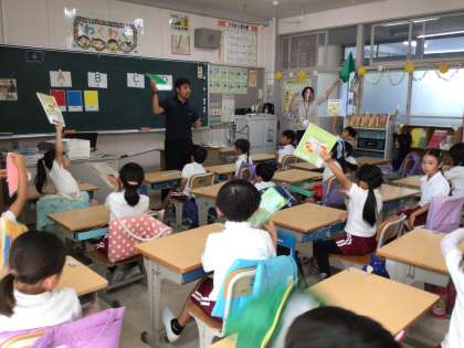 外国語楽しいね 公開日 2023/11/03 更新日 2023/11/03 各学年から 1年生が、外国語の授業を楽しみました。 英語で歌を歌ったり、色の名前クイズをしたりしました。 今から慣れ親しむことで、3年生からの外国語活動につなげていきます。