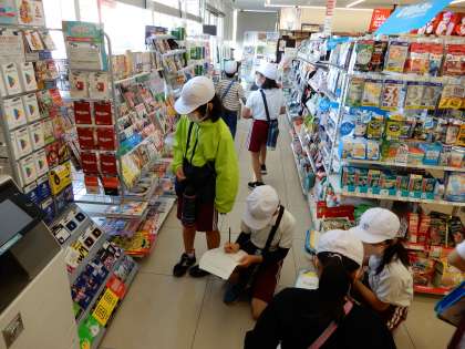お店について調べよう 公開日 2023/11/03 更新日 2023/11/03 各学年から 3年生が、社会科の学習で、学校の近くにあるコンビニに出かけました。 お店の中では、商品の並べ方などを見学し、バックヤードも見せていただきました。最後は店長さんに質問もしました。他のスーパーと比べるなどして、店のひみつに迫っていきます。