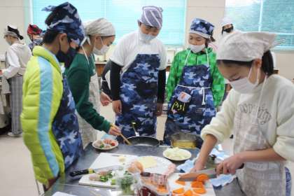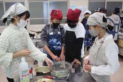 まかせてね 今日の食事 公開日 2023/12/04 更新日 2023/12/04 各学年から 6年生が家庭科の調理実習で、栄養とバランスを考えたおかずを作りました。 一人ずつ調理をしましたが、中には家からおすすめの調味料を持ってくるなど、なかなかの料理人もいました。 どの子も時間内に準備から片付けまでを行い、手際の良さを感じさせました。