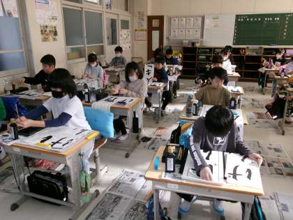 書き初め大会 公開日 2024/01/12 更新日 2024/01/12 学校行事 2024年がスタートし、教室に子どもたちの元気な声が響いています。 学校初日は、豊田市の小中学校が一斉に書き初め大会を行います。 本校でも、休み明け集会をオンラインで実施した後、書き初め大会を行いました。 今までの練習の成果を発揮しようと、どの子も集中して取り組んでいました。 今回の作品は、18,19日の校内書き初め展にて展示します。 ぜひご覧ください。