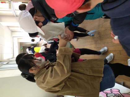 休み時間の後に、保健委員から手洗いソープをもらい、手のひらや甲、指の間をしっかりと洗いました。手洗いの仕方については、1月の保健指導でどの学年も学んでいます。日ごろから取り組めるといいですね。