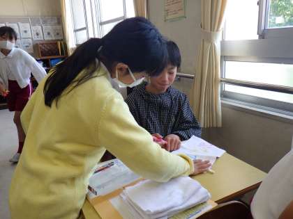 フレンド班掃除が始まりました 公開日 2024/05/18 更新日 2024/05/18 各学年から <特色ある学校づくり推進事業だより> 岩倉小では、清掃活動を縦割り班(フレンド班)で行っています。6年生が、フレンド班)での掃除に向けて、下級生用に雑巾の準備をしました。低学年の子たちが、自分の使う雑巾がすぐにわかるとよいという6年生のアイデアです。最高学年として、下級生をリードする姿がここにも表れていました。