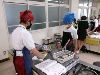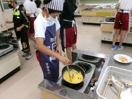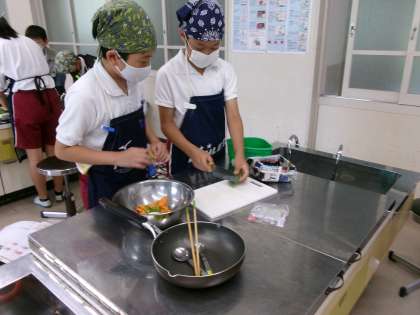 朝食から健康な1日を 公開日 2024/05/23 更新日 2024/05/23 各学年から 家庭科の授業で朝ご飯のおかずになる炒め調理の実習を行いました。 今回は、野菜のいろどり炒めとスクランブルエッグの2品です。 前週の授業で分担や手順を確認して取り組みました。 ニンジンを切るのに多少手間取りましたが、どの班もおいしく出来上がりました。家でも家族に作ってあげられるといいですね。