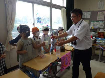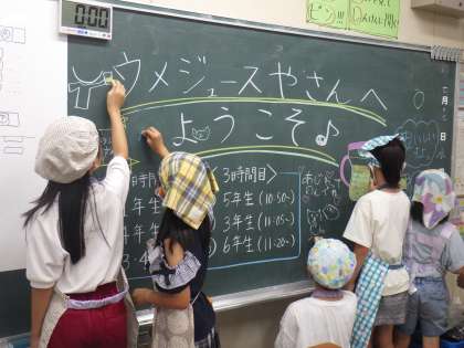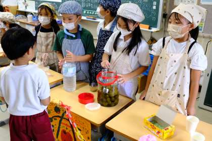 ウメジュース おいしくできたよ 公開日 2024/07/31 更新日 2024/07/31 特色ある学校づくり推進事業 <特色ある学校づくり推進事業だより> 5月にとったウメで作ったウメジュース。毎日様子を眺めながらようやく出来上がりました。全校のみんなにぜひ味わってもらいたいと、2年生がウメジュースやさんを開きました。係を分担して早速開始。とても手際よくお客さんに対応していました。 みんながおいしいと言ってくれてとっても嬉しそうな2年生。大成功でしたね!