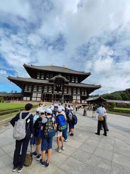 修学旅行(2日目) 公開日 2024/10/05 更新日 2024/10/05 学校行事 修学旅行の2日目がスタートしました。 今日は奈良での1日。たくさん歩くので、朝食はしっかり食べたいです。 奈良の天気は最高です。 東大寺から散策が始まります。