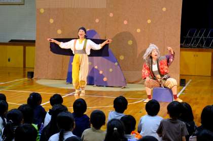 2人でいくつもの役をこなす演技に、子どもたちは真剣に見入っていました。