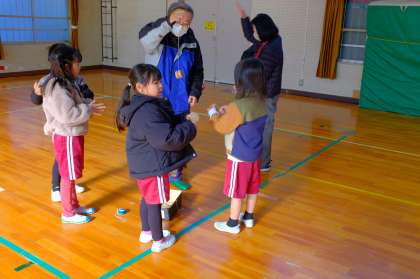 昔遊びを楽しんだよ 公開日 2025/01/20 更新日 2025/01/20 特色ある学校づくり推進事業 <特色ある学校づくり推進事業だより> 1年生が、地域の方と昔遊びを楽しみました。 めんこ、けん玉、コマ回し、あやとりやなど、やり方を教えてもらい、一緒に遊びました。 今までできなかった技が、コツを教えてもらうことでできるようになり、ちょっと名人に近づけたようです。