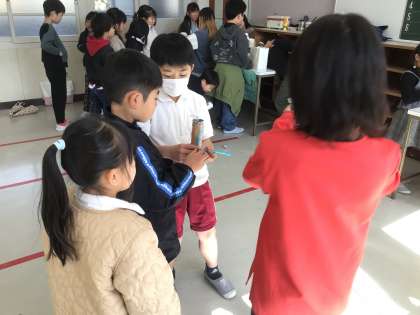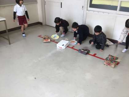 2年生が、生活科で作ったおもちゃで1年生と遊びました。