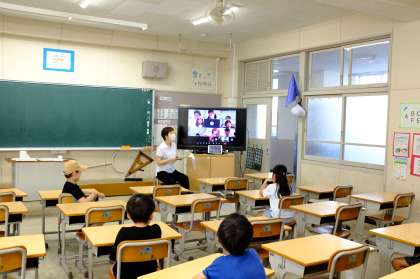 放課後児童教室を利用している子たちは教室にきて、それ以外の子たちはそれぞれの場所から参加しました。夏休みの思い出を伝え合ったり、課題提出や9月1日の持ち物について確認したりしました。楽しそうな声が各教室から聞こえてきました。