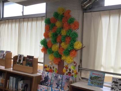 きりんクラブ読み語り 公開日 2025/09/16 更新日 2025/09/16 特色ある学校づくり推進事業 <特色ある学校づくり推進事業だより> 9月の読み聞かせです。 久しぶりのこともあり、みんなとても真剣に聞いていました。 図書館の掲示も秋らしくなってきました。