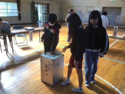 選挙出前トーク 公開日 2025/11/20 更新日 2025/11/20 各学年から 6年生が、選挙出前トークの授業を行いました。 選挙の仕組みについて話を聞き、実際に投票してみました。 6年後には選挙権を得て、一票を投じることができます。 大切な権利について学ぶ機会となりました。