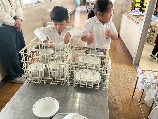 担任の先生から、準備や配膳、片付けの仕方や時間を教えてもらい、きちんと行うことができました。