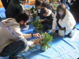 5年生はミニ門松づくりです。竹を組み合わせて縛るのが特に難しく、講師の方に手伝...