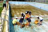毎年水泳の授業が始まる前に、6年生がプールをきれいにしてくれます。 排水溝の葉っ...