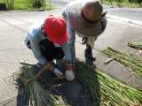 <特色ある学校づくり推進事業だより> 稲を刈ったら、次は稲を束ねて干す作業です...