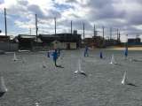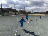 なわとびリレーをしました。冷たい風にも負けず、元気に走っていました。