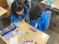 「大きい数」の学習で、お買い物ごっこをしました。レジ係とお客さんになり、「これ...