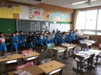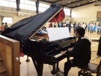 6年生が体育館に集まって、歌っていました。卒業式で歌う歌を感染症対策を講じながら...