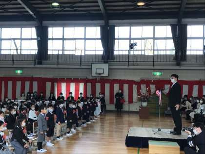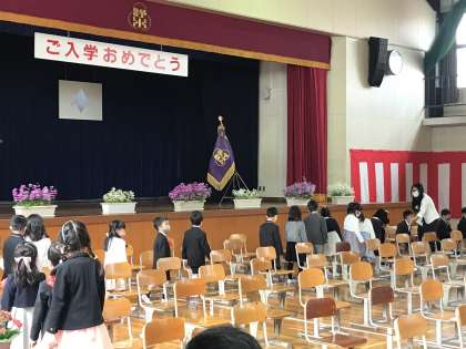 入学式での入学認定。 不安や緊張の中 元気よく返事ができました。