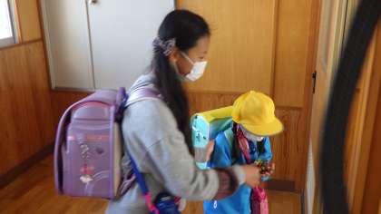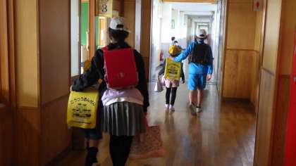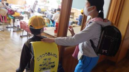 学校に慣れない1年生を教室まで、優しく届けてあげていました。