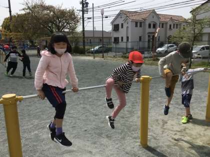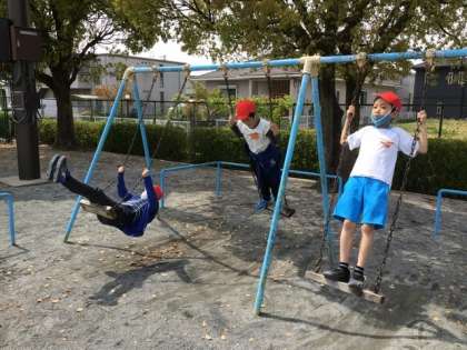 遊具を譲り合いながら、マナーを守って遊んでいます。