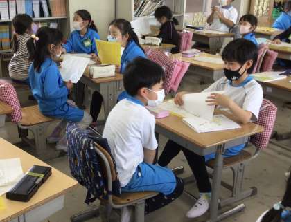 「すきなこと、なあに」で、話し方や聞き方の工夫を考え、楽しくやりとりしました。「上手に話せたよ。」「友達のことがよく分かってよかったよ。」と喜んでいました。