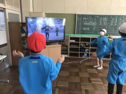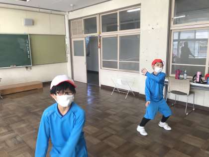 6年生の動きを真似しながら
