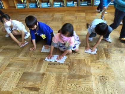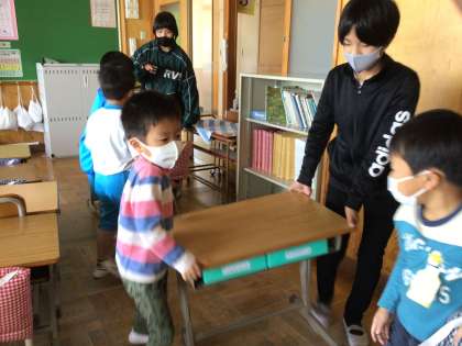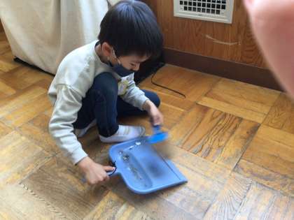 6年生に手伝ってもらいながら、掃除がんばっています。ほうきやちりとりの使い方や、雑巾がけも上手になってきました。