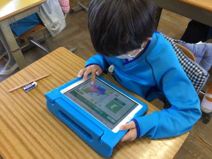 教科書でそれぞれの県の特徴を確認した後、タブレットを使って都道府県の位置クイズをしました。