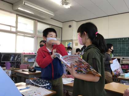 友達の好きな色やスポーツ、食べ物についてインタビューしました。