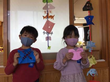 「ちょきちょきかざり」の作品が完成しました。切り方を工夫してお気に入りの作品が出来ました。