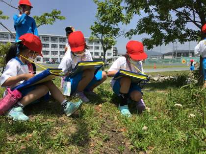 お花や生き物を見つけて、スケッチしました。