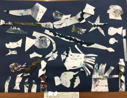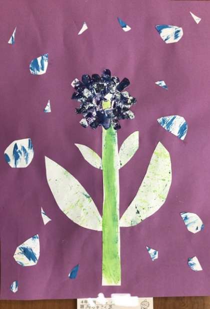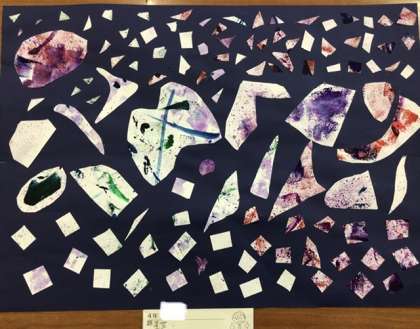 先週かいた模様を使って、コラージュしました。色味や模様を生かし、発想豊かに仕上げることができました。