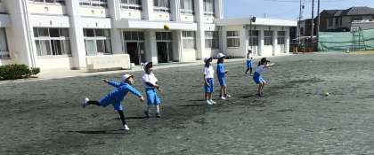 ボールの持ち方に気を付け、上へ遠くへ投げることを意識しました。