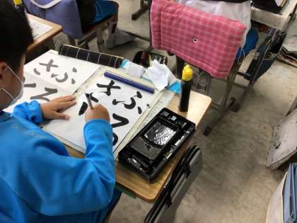 5年生になって2回目の習字の授業。5年生になると姿勢も素晴らしいですね♪