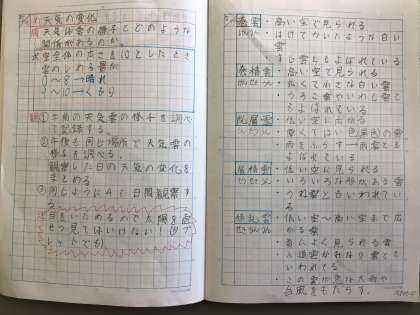 自主学習ノートの取り組みの一例です。理科のテストに向けて教科書やノートをもとに復習をしています。めあてやまとめがしっかりと書いていていいですね。