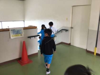 廊下は静かに歩くことを意識しています。学校案内の中で、学校のルールも学んでいます。