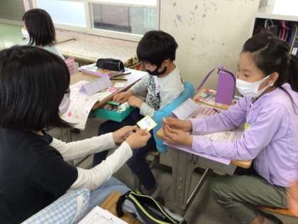 友達と交換しました。リアクションや、ジェスチャーを取り入れて