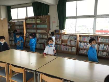 緊急事態宣言を受けて、本の貸し借りはクラス単位で行っています。対策をしながら、子供たちの学習活動を充実させていきいます。