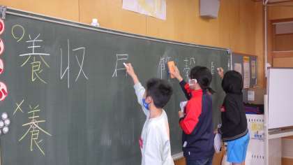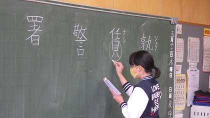 新出漢字の担当を決め、一人一人が先生となって注意する点などを解説しています。