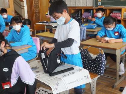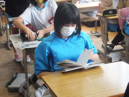4時間目が習字の授業でした。早く給食を食べたいので、急いで片づけをしています。早く終わった子は、落ち着いて読書をしています。