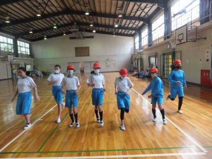 1組の体育の様子です。20mシャトルランの練習を行いました。