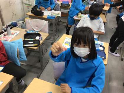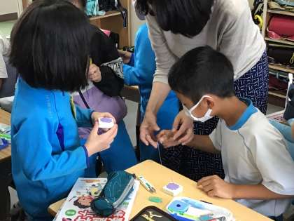 家庭科の授業で玉結びをしました。