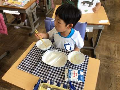給食を時間内に完食できるようになってきました。成長しています。