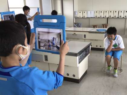 有名な美術作品の真似をしながら、登場人物の写真の心情や状況を想像しました。